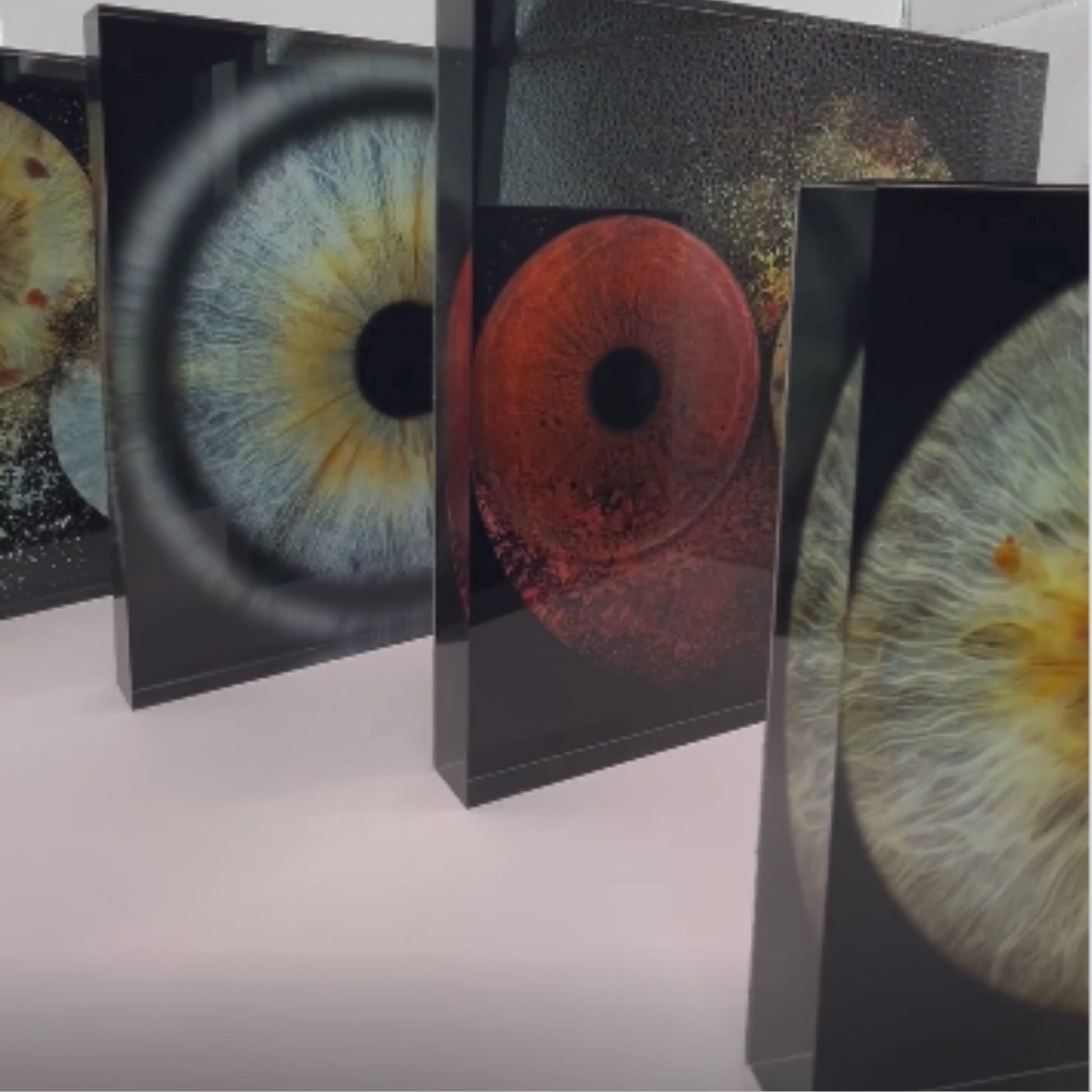 Our range of iris blocks are made from 20mm thick acrylic, perfect for standing on any flat surface, shelf, desk or mantelpiece. When the light hits the iris design, the colours and textures jump out at you, creating an amplified projection of your iris. These rectangle iris blocks are suitable for multiple irises, looking great with an effect making a lovely piece of Iris Art.